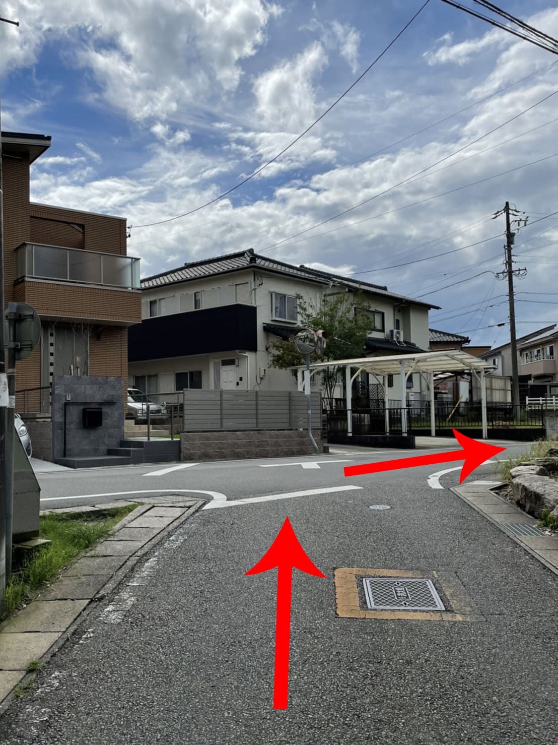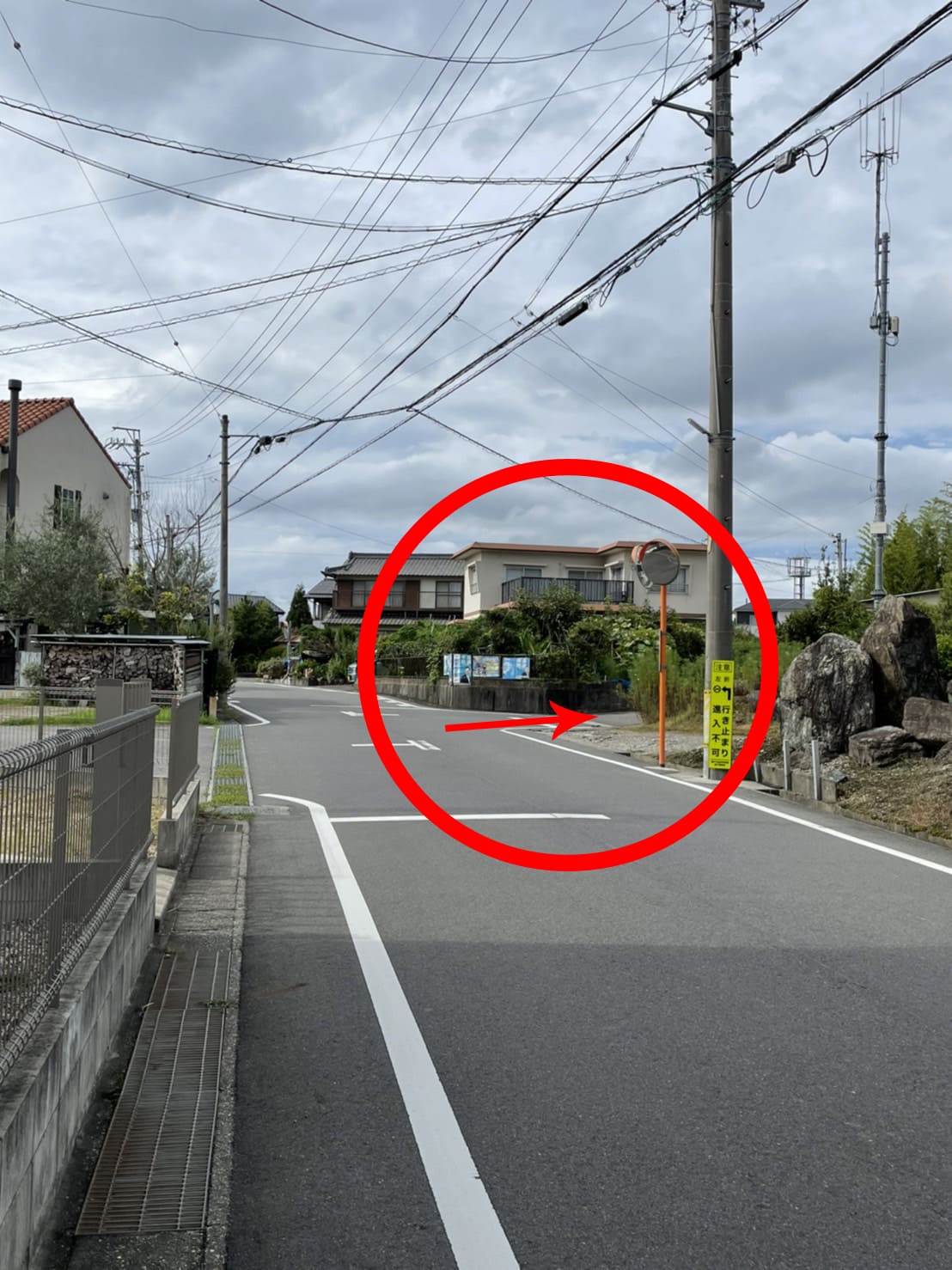 左折後、すぐ下画像〇箇所を右に曲がってください。