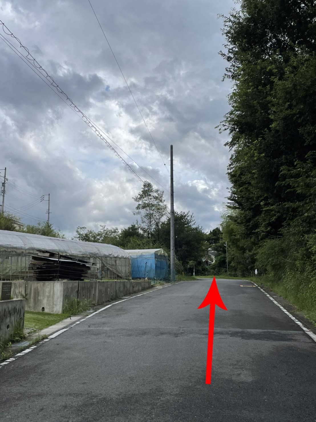 左手にビニールハウスが見えてきます。まっすぐお進みください。