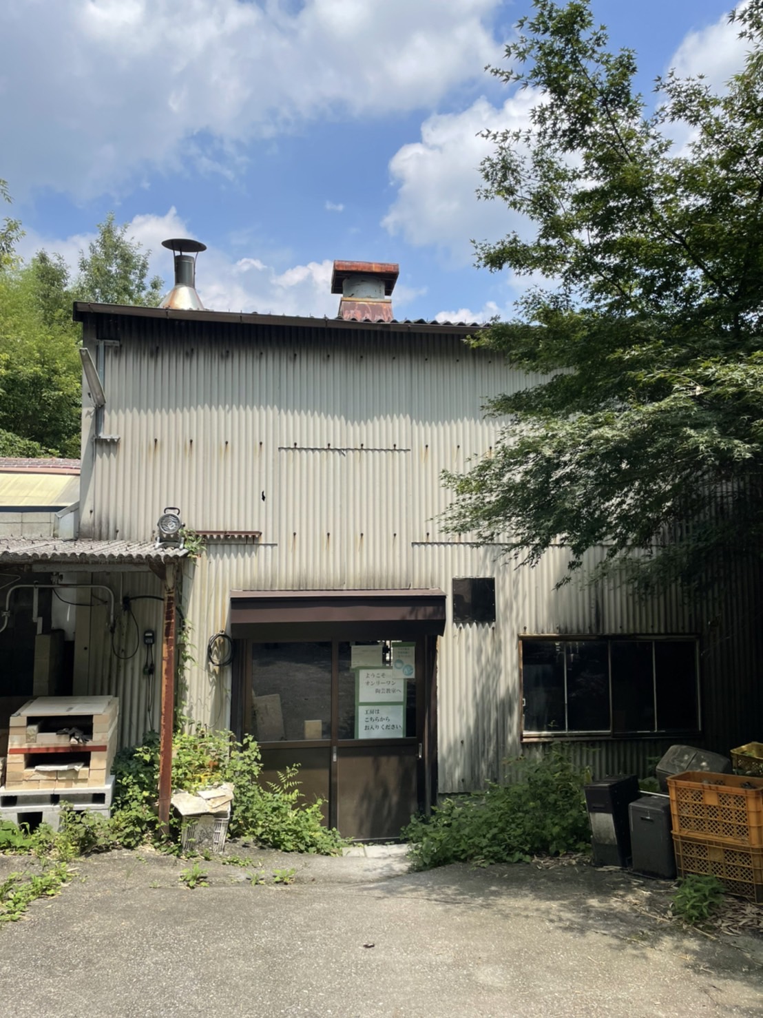 こちらが工房の入り口です。建屋の中にお進みください。スタッフがお待ちしております!